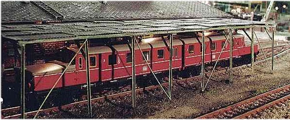 Es war viel Arbeit, bis der ETA doch über die Anlage rollen konnte. Seit ich jedoch den klassischen Schienebus VT 98 von KRES in Betrieb nehmen konnte, muss der ETA sich nicht mehr über meine Gleise quälen. Er steht jetzt als kleines Schaustück geparkt unter dem Schutzdach neben dem Lokdschppen. Dort steht er gut !